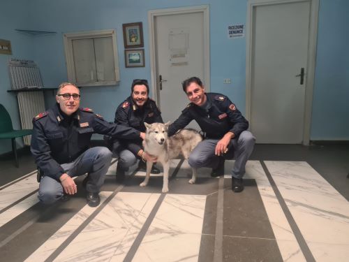 Durante il servizio di ordine pubblico espletato dagli uomini del Commissariato di P.S. di Sarno, i poliziotti hanno trovato un cane – razza Husky – che un po’ disorientato, si aggirava proprio accanto ai mezzi delle forze dell’ordine, salendo a bordo di uno dei furgoni.