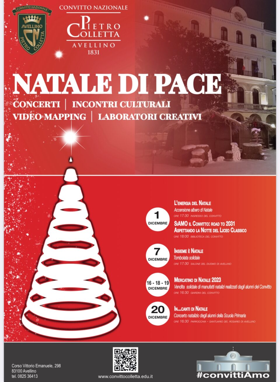 Il 1° dicembre 2023, al Convitto Nazionale “P. Colletta”, hanno inizio le attività inerenti la rassegna “NATALE DI PACE” che prevede un calendario di concerti, incontri culturali, video mapping, laboratori creativi in attesa del Natale.