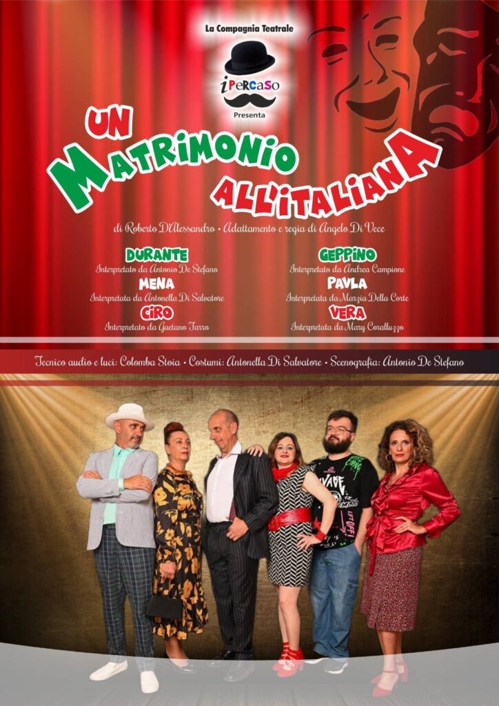 L’anno teatrale si chiude sabato 30 Dicembre 2023, ore 19,30, con la compagnia di Montecorvino Rovella (SA) “IPERCASO” che metteranno in scena la divertente e significativa commedia in due atti di Roberto D’Alessandro: “ UN MATRIMONIO ALL’ITALIANA”.