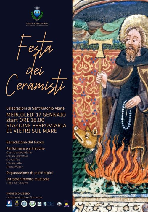 Come di consueto anche Vietri sul Mare, città di antica tradizione ceramica, anche quest’anno intende onorante Sant’Antonio Abate con una grande festa dei ceramisti con la benedizione della “vampa”, la cottura dei pezzi di ceramica con il fuoco santo, la degustazione di piatti tipici e momenti di spettacolo e musica popolare.