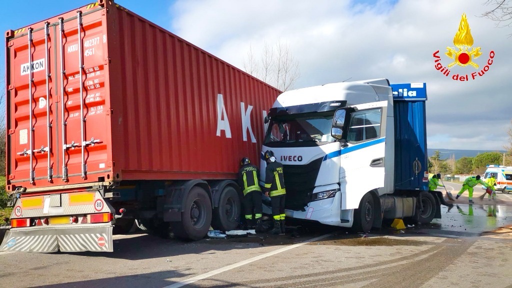 La squadra dei Vigili del Fuoco del distaccamento di Lioni, intorno alle ore 13’00 di oggi è intervenuta nel territorio del comune di Conza Della Campania, sulla SS 7, per un incidente stradale che ha visto coinvolti due autotreni che percorrevano l’Ofantina nelle due opposte direzioni. A causa del violento impatto uno dei due uomini alla guida dei pesanti automezzi, di 64 anno originario di San Valentino Torio in provincia di Salerno, è rimasto incastrato tra le lamiere contorte e dopo essere stato liberato veniva affidato ai sanitari del 118 intervenuti i quali lo trasportavano presso l’ospedale di Sant’Angelo dei Lombardi per essere sottoposto a cure mediche. L’autista dell’altro automezzo, di 46 anni originario di Eboli sempre in provincia di Salerno, non ha subito grosse conseguenze ed è stato visitato sul posto dai sanitari del 118. I due camion sono stati messi in sicurezza e sul posto i Carabinieri della Stazione di Sant’Andrea Di Conza hanno curato i rilievi di propria competenza.