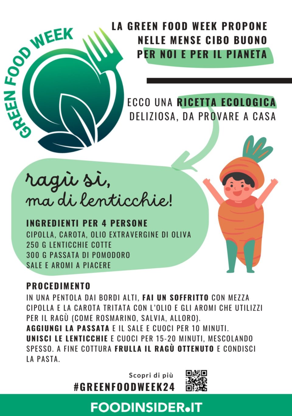 “Scegliere cosa mangiare può ridurre l’impronta ambientale personale fino al 75%, e farlo insieme a tante persone che mangiano in mensa può veramente avere un impatto significativo sul clima, perché può stimolare la condivisione di un’etica con un profondo valore conviviale. Ecco perché per noi la Green Food Week è un’occasione importante per esserci e contribuire a prendere coscienza del fatto che il clima siamo noi”, ha aggiunto Elena Uga, referente Pump, Pediatri per Un Mondo Possibile, di ACP.