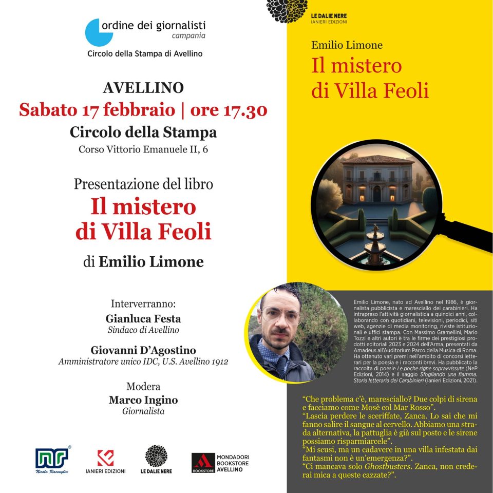 “Il mistero di Villa Feoli”, la cui uscita è prevista per il 16 febbraio, è già pronto al tour di presentazioni, in giro per la Penisola, e la prima nazionale si terrà in Irpinia, terra d’origine di Emilio Limone: pur mancando dalla sua terra da molti anni, nel cuore dell’autore non è venuto mai meno il senso di appartenenza a tal punto che per questo suo primo romanzo ha scelto di dedicarle la provenienza geografica e la squadra del cuore del protagonista del romanzo.