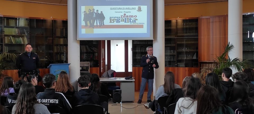 Proseguono gli incontri formativi tra gli studenti delle scuole della Provincia di Avellino e i poliziotti della Questura di Avellinonell’ambito della settima edizione del progetto-concorso “PretenDiamo Legalità per l’anno scolastico 2023/2024, ideato dal Dipartimento della Pubblica Sicurezza -Ufficio Relazioni Esterne Cerimoniale e Studi Storici  in collaborazione con il Ministero dell’istruzione.