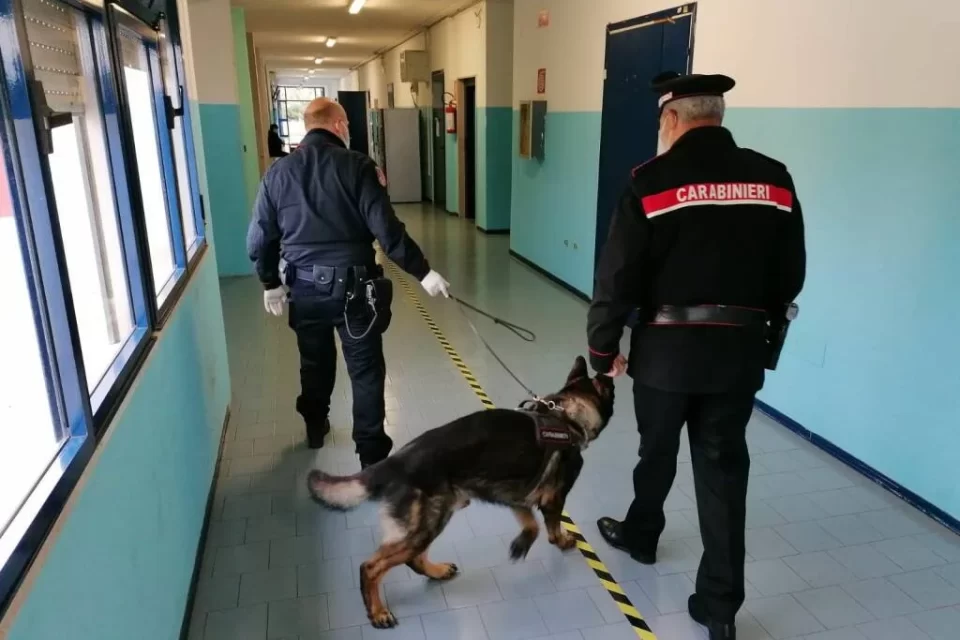 Unità cinofile dei carabinieri impiegate in controlli antidroga nelle scuole. Rinvenuta sostanza stupefacente del tipo hashish