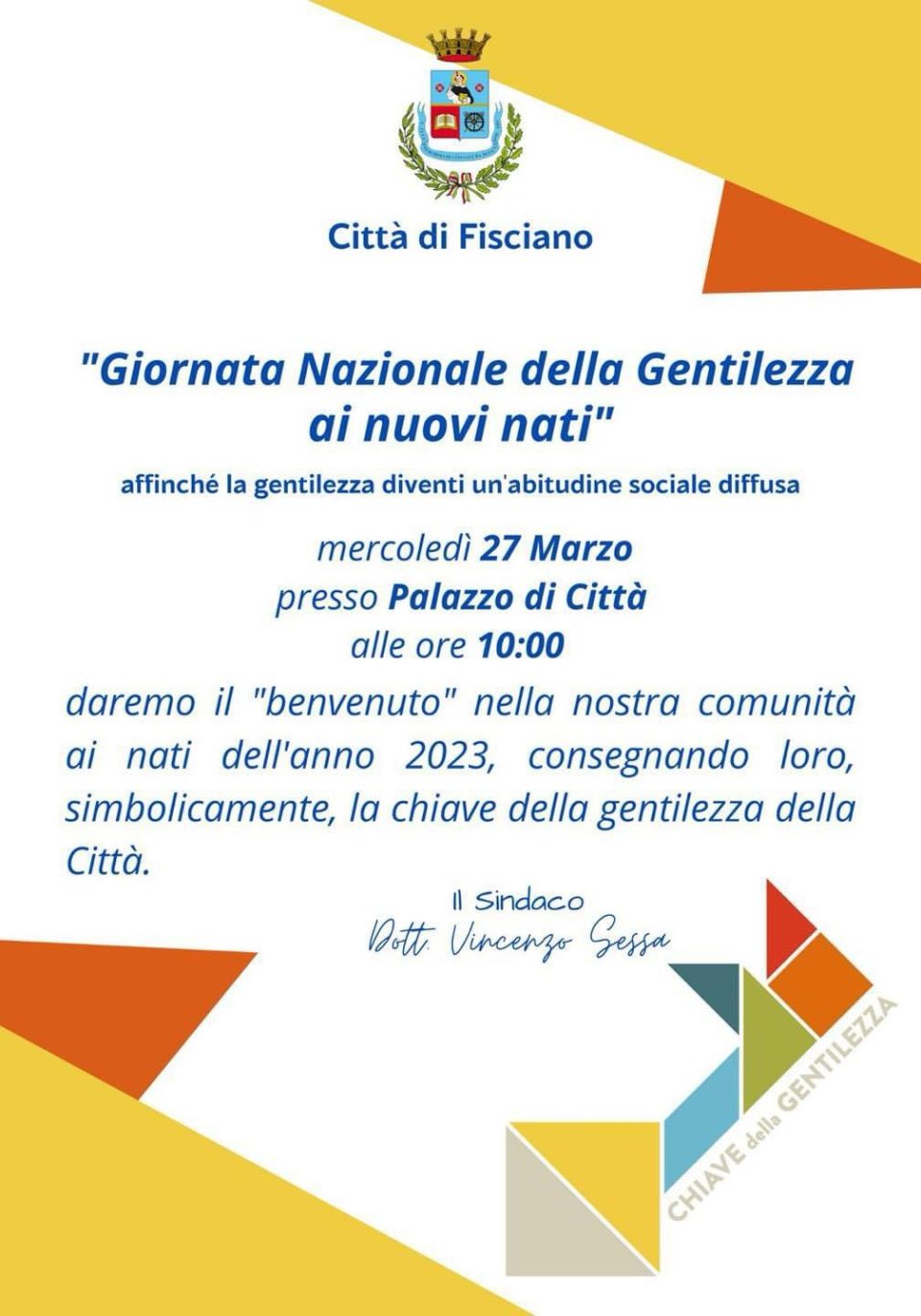Ad ogni bambino – spiega il sindaco – verrà consegnata una chiave simbolica, la “chiave della gentilezza della Città”. Questo gesto rappresenta l’accoglienza ufficiale dei nuovi nati nella comunità e un auspicio per un futuro di gentilezza e rispetto.