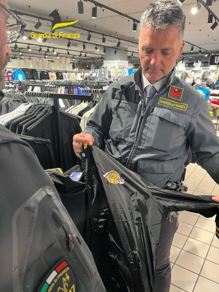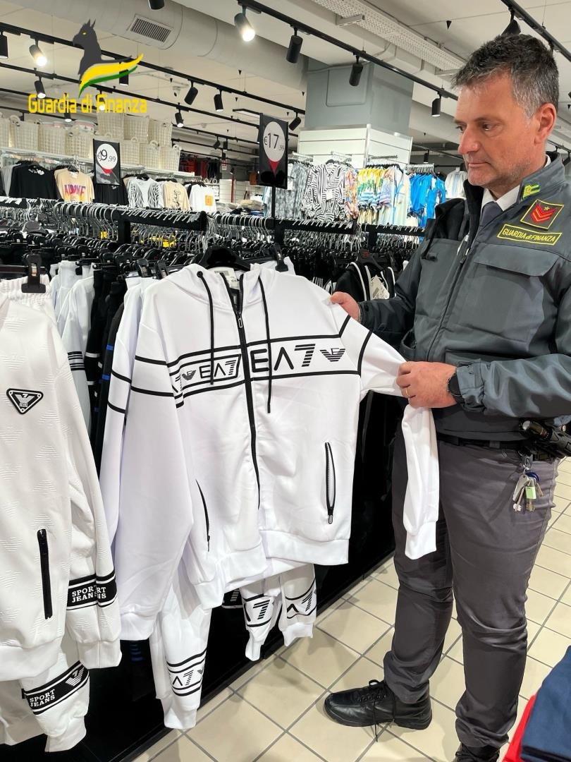 Presso l’attività commerciale erano poste in vendita oltre 100 tute sportive che riproducevano segni mendaci e contraffatti, riconducibili al marchio “EMPORIO ARMANI 7” e ulteriori 40 riconducibili a società sportive della lega americana NBA, quali “LAKERS” e “CHICAGO BULLS”. Inoltre, venivano rinvenuti oltre 60 giubbotti riconducibili ai marchi “STONE ISLAND”, “THE NORTH FACE” e lo stesso “EMPORIO ARMANI 7”. I marchi riportati sugli articoli sequestrati, per dimensioni e per grafica, si discostano da quelli originali solo per alcuni dettagli, ingannando così il consumatore che facilmente può essere indotto a credere di acquistare un prodotto originale.