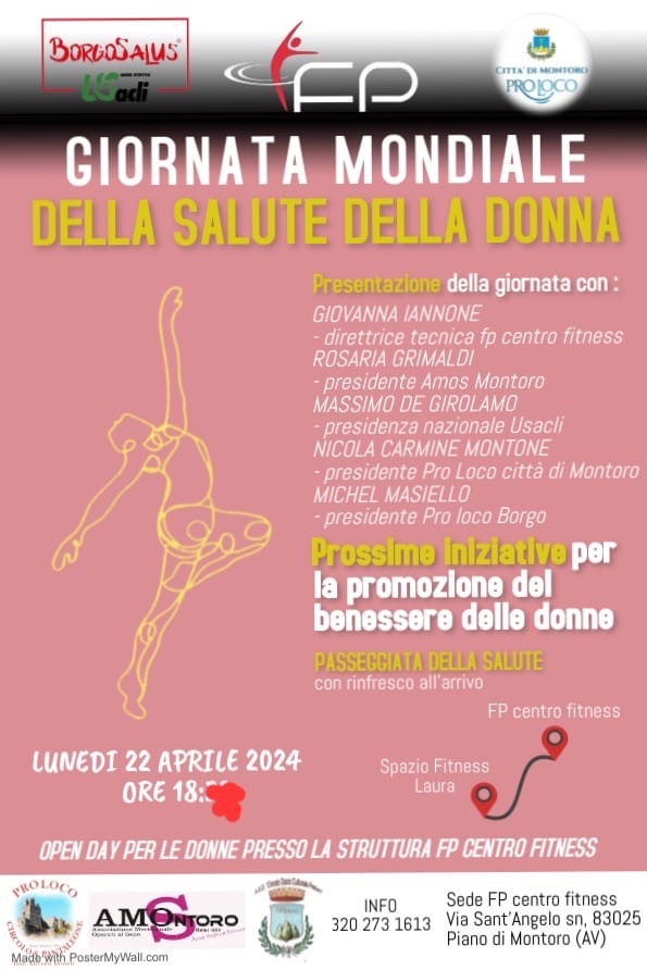 Montoro si appresta a celebrare un evento di particolare rilevanza sociale e sanitaria: la “giornata nazionale della salute della donna”, fissata per il 22 aprile. L’iniziativa, che avrà luogo presso FP centro Fitness, è frutto della collaborazione tra diversi enti e associazioni locali, tra cui l’AMOS – associazione meridionale operate al seno, la Proloco città di Montoro, l’associazione Borgosalus, l’US Acli, la Proloco Borgo e il circolo socioculturale Preturo. Un momento importante di riflessione e sensibilizzazione sulla salute femminile che vedrà la partecipazione attiva della comunità montorese.