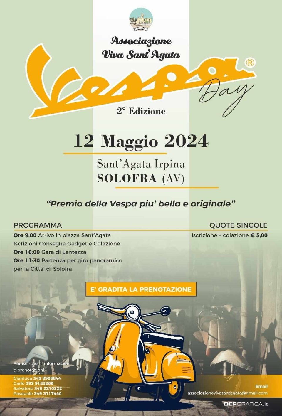 Dopo il successo del 2023 domenica 12 maggio ritorna la seconda edizione del Vespa Day alla frazione Sant’Agata Irpina di Solofra, evento organizzato dall’associazione Viva Sant’Agata.