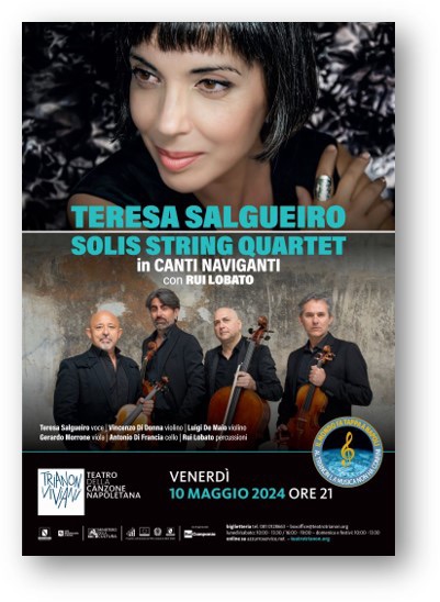 L’incontro tra Teresa Salgueiro e il quartetto d’archi partenopeo Solis, con la partecipazione del percussionista Rui Lobato, ci porta alla scoperta di un itinerario artistico/musicale tra Napoli e Lisbona, due città-mondo che rivelano di avere tanto in comune.