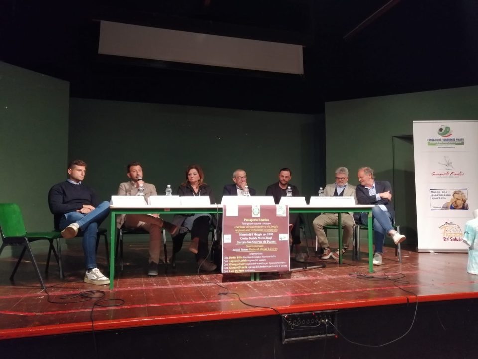 Sensibilizzata dalla battaglia condotta dalla Fondazione, la Pro Loco di Mercato San Severino, su iniziativa del Presidente Alfonso Ferraioli, l’8 maggio u.s., ha organizzato nel capoluogo un incontro-dibattito che ha visti come attori nomi illustri nel campo medico-sportivo nonché società sportive, famiglie e giovani atleti professionisti e amatoriali.