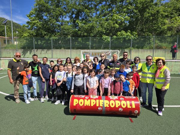 Durante la mattina di oggi, presso il centro sportivo di Vallata, i Vigili del Fuoco di Avellino unitamente al personale dell’ associazione nazionale sezione di Avellino, hanno svolto “Pompieropoli” il percorso ludico formativo, per l’istituto comprensivo G. Pascoli di Vallata. I piccoli Pompieri sono giunti dai comuni appartenenti all’istituto comprensivo di Vallata con sedi a Trevico, Scampitella Vallesaccarda. Dopo un saluto iniziale sono stati più di duecento i bambini che si sono cimentati nel percorso istruttivo che li ha portati ad essere diplomati come “Pompieri per un giorno” Al termine dopo le foto di rito hanno intonato la canzone “Il pompiere paura non è ha” per ringraziare per la bella mattinata trascorsa con i loro beniamini.
