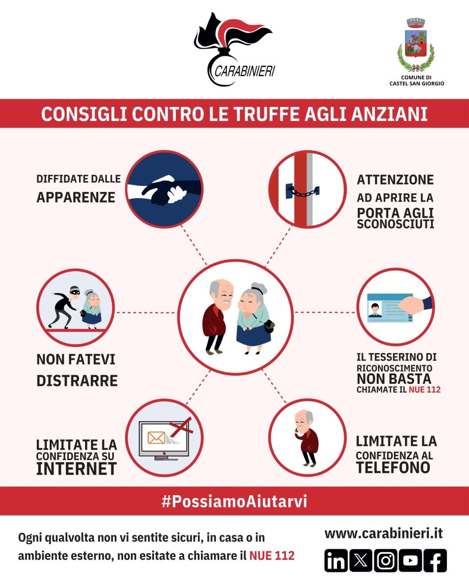 La cosa importante è rivolgersi sempre ai Carabinieri chiamando il 112» – ha concluso il primo cittadino di Castel San Giorgio.