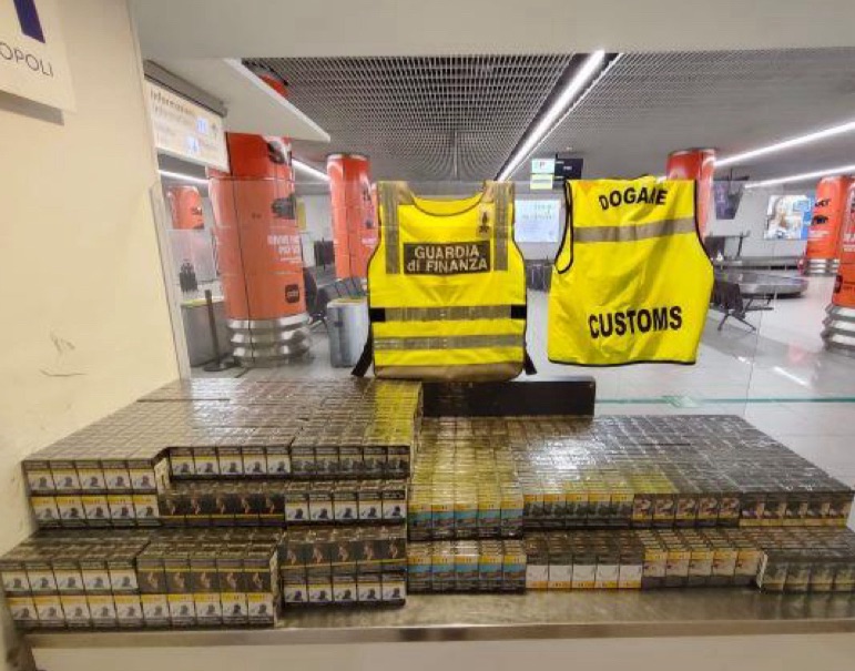 Domenica 11 agosto, nel corso dei normali controlli sui passeggeri, è stato intercettato un passeggero di nazionalità bulgara proveniente da Istanbul con 4 valigie al seguito contenenti 2.900 pacchetti di sigarette estere per un peso totale di 58 kg.