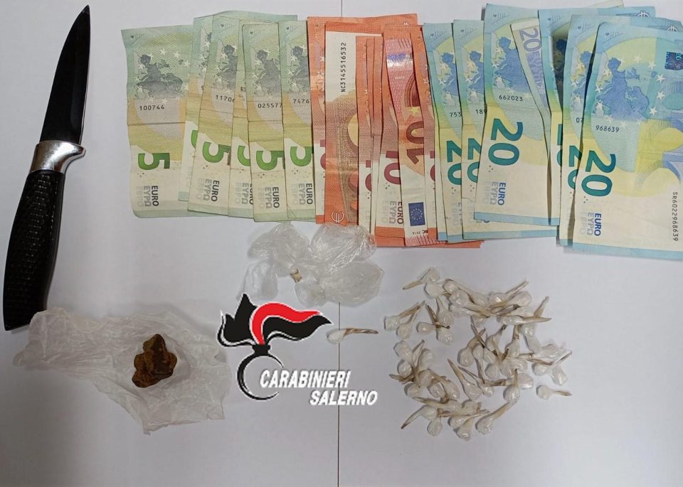 A Roccapiemonte i Carabinieri del Nucleo Operativo e Radiomobile della Compagnia di Mercato San Severino hanno arrestato, per “resistenza a Pubblico Ufficiale e detenzione ai fini di spaccio di sostanze stupefacenti”, un 19enne di Nocera Inferiore. I Carabinieri, durante un servizio di controllo dinamico del territorio finalizzato alla prevenzione e repressione delle attività di spaccio, all’esito di perquisizione hanno rinvenuto nella disponibilità dell’indagato sostanza stupefacente per circa 9 grammi del tipo crack e 4,2 grammi di hashish, suddivisa in 49 involucri, al somma ni contanti di euro 270,00, verosimile provento dell’attività illecita, nonché un coltello intriso di sostanza stupefacente.