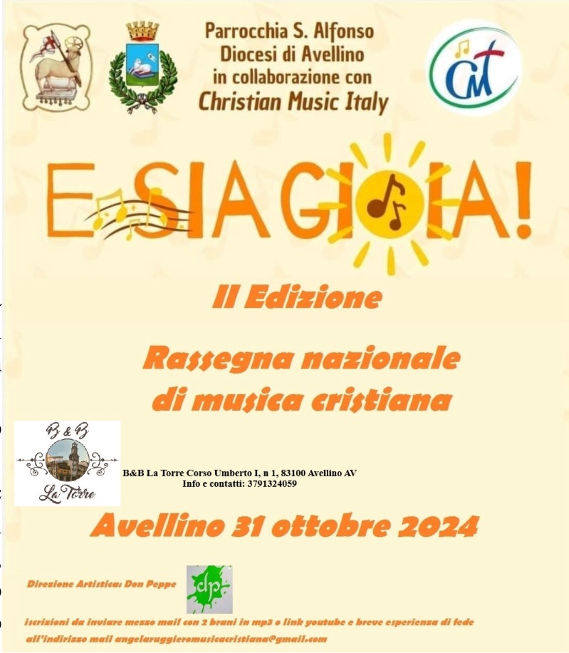 La Parrocchia Sant’Alfonso di Avellino in collaborazione con Teatro Sant’Alfonso, Christian Music Italy e Diocesi di Avellino, organizza, dopo il successo della prima edizione, la seconda edizione di musica cristiana con l’obiettivo di divulgare un grande messaggio: