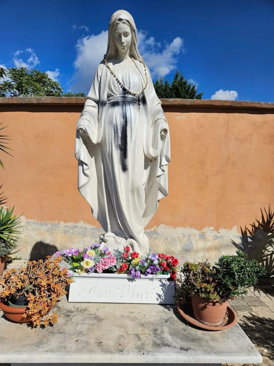 Grave gesto avvenuto a Scafati dove ignoti hanno spezzato le mani e imbrattato il busto con una croce nera della statua della Madonna sita in Via Casciello, alle spalle del cimitero di Scafati. Dura la condanna giunta dal sindaco Pasquale Aliberti che in un post scrive: “Oggi apprendo che la statua ha ripreso il suo colore bianco grazie alla sensibilità di Franco Pisacane e ai tanti che si sono adoperati. Per le mani strappate via, ovviamente, sarà più difficile.