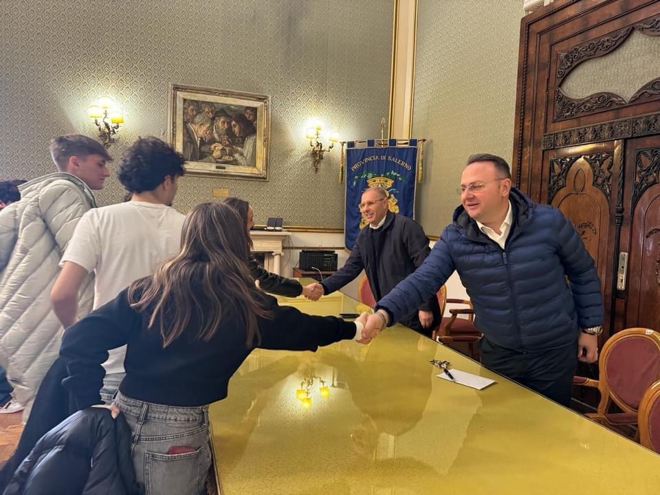La Provincia di Salerno oggi ha ricevuto a palazzo sant’Agostino una delegazione di studenti a termine del corteo di protesta per le problematiche del sistema scolastico. Ragazze e ragazzi sono stati ascoltati dai due consiglieri provinciali Martino D’Onofrio, delegato all’edilizia scolastica e pubblica istruzione, e Francesco Morra, delegato ai trasporti.