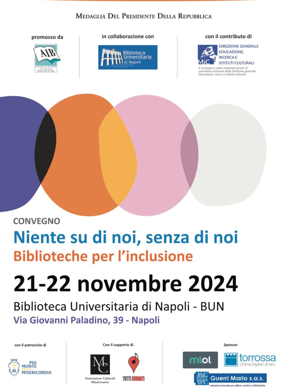 Il 21 e 22 novembre l’Associazione italiana biblioteche fa il punto con il convegno nazionale “Niente su di noi, senza di noi. Biblioteche per l’inclusione” in programma presso la prestigiosa sede della Biblioteca Universitaria di Napoli.