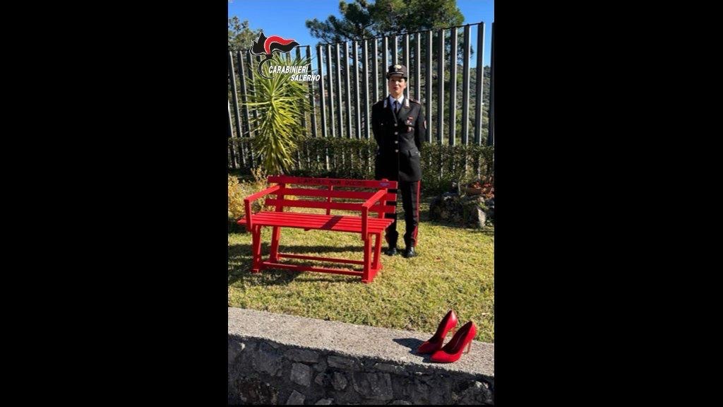 residenziale della località Castel Ruggero di Torre Orsaia (SA), una panchina rossa è stata