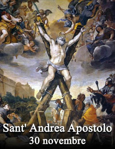 Nato a Betsaida in Galilea, nel periodo della nascita di Cristo, vive a Cafarnao assieme al fratello Simone, chiamato poi Pietro. A parte i pochi ma significativi tratti della vita dell’apostolo che ci offre il Vangelo, sembra che dopo il ritorno di Gesù al Padre, Andrea abbia iniziato un viaggio missionario. Secondo le fonti più accreditate si stabilisce a Patrasso, dove continua ad annunziare il Vangelo. Intorno all’anno 60 viene arrestato e, a causa del suo rifiuto di offrire sacrifici agli dei, è condannato alla crocifissione su una croce che, per la sua forma particolare a braccia uguali, è detta tradizionalmente ‘Croce di S. Andrea’. E’ il primo discepolo ad essere chiamato dal Cristo. Assieme a lui aderisce Giovanni. Andrea presenterà poi Simone a Gesù. E’ ancora Andrea che indica a Gesù il ragazzo provvisto di cinque pani e due pesci, con i quali il Signore sfama una folla intera. L’Apostolo Andrea è una figura di fedele e silenzioso ‘operaio della vigna’, che desidera solo offrire il proprio servizio. Incerte sono le vicende che riguardano le sue reliquie. Esse passano da Patrasso a Costantinopoli, poi ad Amalfi. La sua testa, giunta a Roma nel 1462, è stata restituita alla Grecia, il 23 settembre 1964, dal papa Paolo VI.