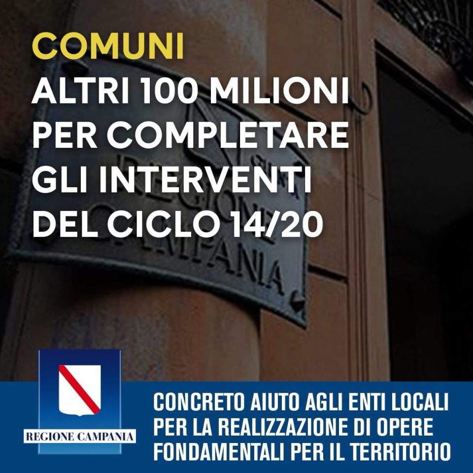 DALLA REGIONE AI COMUNI ALTRI 100 MILIONI PER COMPLETARE GLI INTERVENTIDELLA PROGRAMMAZIONE 2014/2020