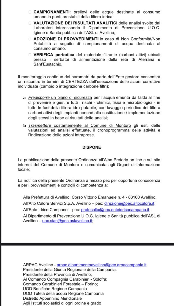 Con ordinanza del sindaco Salvatore Carratù è data notizia del rientro dell’emergenza idrica. I valori sono rientrati nei parametri di legge. Questo il sunto dell’ordinanza di revoca della disposizione precedente.