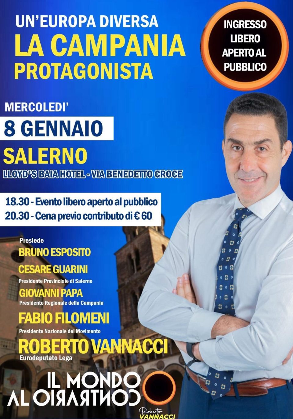 Si terrà a Salerno un’importante manifestazione del comitato Mondo al contrario che fa riferimento al Generale, oggi europarlamentare, Roberto Vannacci che sarà presente e concluderà con un suo intervento la giornata dei lavori dell’associazione.
