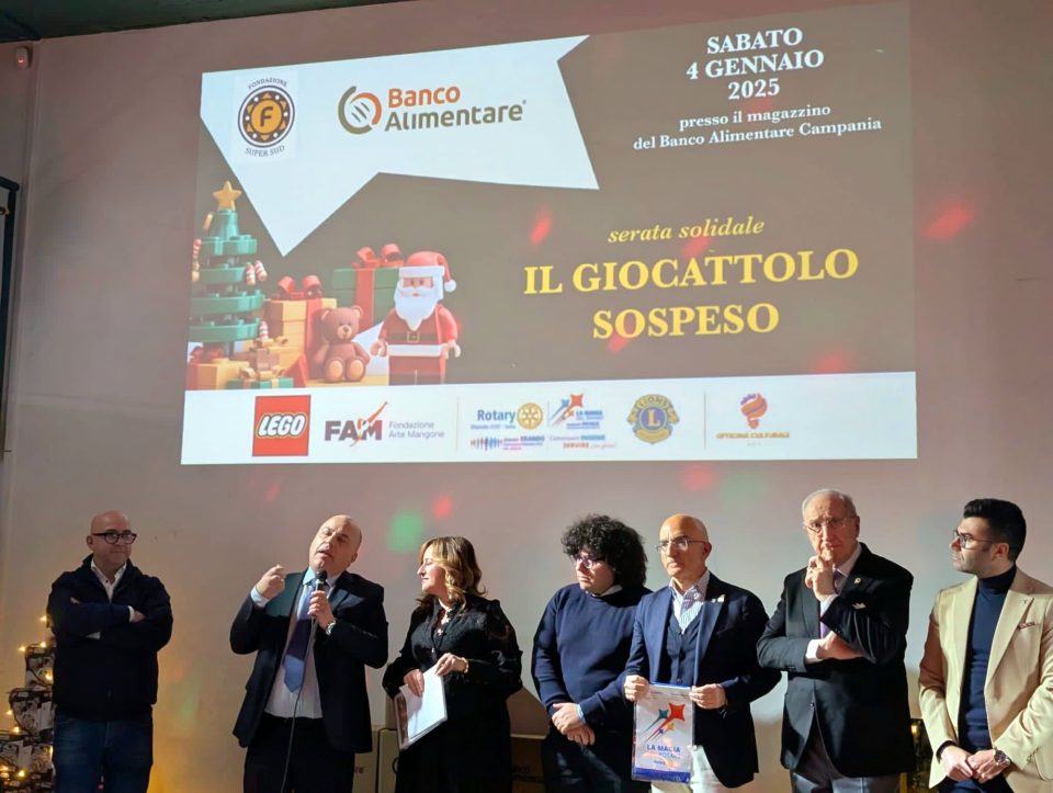 Un trionfo di solidarietà e condivisione ha segnato il successo dell’iniziativa “Il Giocattolo Sospeso”, che nel giorno dell’Epifania ha portato gioia a più di mille bambini ricoverati in dieci ospedali pediatrici della Campania. Grazie all’impegno della Fondazione Super Sud, presieduta da Giovanni D’Avenia, del Banco Alimentare diretto da Roberto Tuorto, della Fondazione Arte Mangone, del Distretto Rotary 2101, del Distretto Lions 108YA e dell’Officina Culturale di Fisciano, i piccoli hanno ricevuto calze della Befana, set Lego Creator e set Lego Star Wars. Questa meravigliosa iniziativa, resa possibile dal supporto di LEGO, è il risultato di una serata solidale che ha coinvolto oltre 250 partecipanti presso la sede del Banco Alimentare di Fisciano. L’evento, moderato dalla giornalista Barbara Landi, è stato un’occasione per celebrare il potere della solidarietà e ricordare che anche un piccolo gesto può fare una grande differenza. Roberto Tuorto, direttore del Banco Alimentare, ha espresso con emozione l’importanza di dare speranza, non solo con il cibo, ma anche con gesti concreti di vicinanza: “Nel nostro lavoro quotidiano vediamo quanto sia fondamentale regalare speranza. Oggi lo facciamo con un giocattolo, perché donare un sorriso a un bambino in ospedale è un atto che va oltre il materiale: è un segno di attenzione, di cura. Attraverso la nostra rete di oltre 400 organizzazioni caritative, aiutiamo circa 228.000 persone in Campania. Ma il sorriso di un bambino è il simbolo più puro di speranza per tutti noi.”