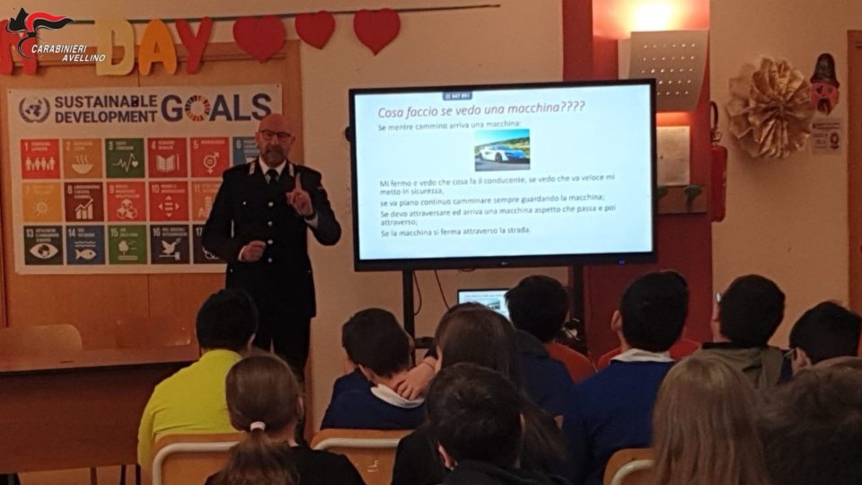 militari hanno spiegato ai tanti ragazzi come approcciarsi al tema del “rispetto reciproco” e della “comune e civile convivenza”, incentrando la seconda parte dell’incontro sull’educazione stradale. Attraverso un’illustrazione facile e divertente, il Comandante della Stazione di Sant’Angelo all’Esca ha spiegato le regole che devono servire per circolare in sicurezza, invitando i giovanissimi discenti ad essere i primi controllori degli adulti “poco attenti”.