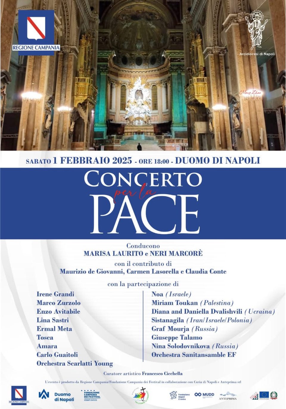 Il Concerto per la pace è promosso dalla Regione Campania, in collaborazione con la Fondazione Campania Festival, la Curia di Napoli e Anteprima.