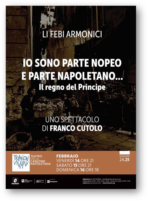 Nel teatro della Canzone napoletana la prima assoluta di “Io sono parte nopeo e parte napoletano… Il regno del Principe”, lo spettacolo di Franco Cutolo