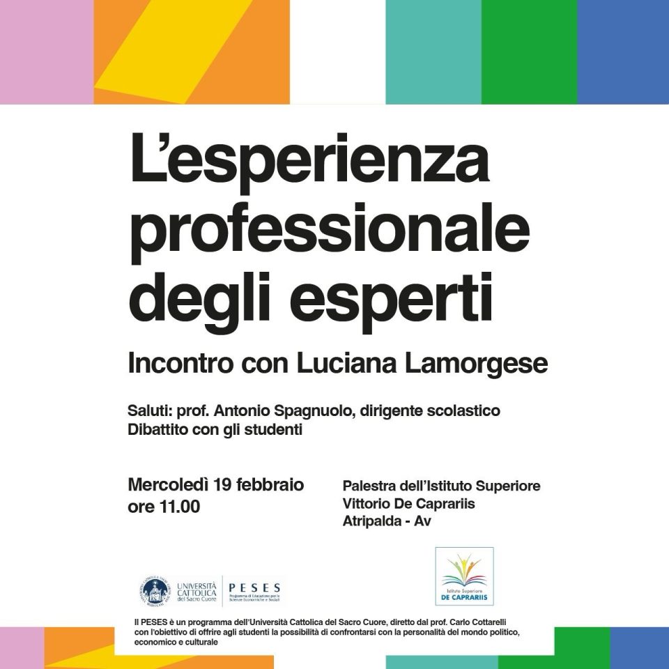 L’iniziativa si colloca all’interno del Programma di Educazione per le Scienze Economiche e Sociali (PESES)promosso dall’Università Cattolica del Sacro Cuore di Milano e diretto dall’economista Carlo Cottarelli con l’obiettivo di offrire agli studenti degli Istituti Superiori di tutta Italia la straordinaria opportunità di confrontarsi con protagonisti ed esperti della recente scena politica, economica e culturale italiana su tematiche diverse. Dopo i saluti del dirigente, prof. Antonio Spagnuolo, gli studenti interagiranno con la dottoressa Lamorgese attraverso un dibattito facilitato dalla professoressa Rita Nigro. Un evento di alto valore formativo attende dunque gli alunni della scuola atripaldese.