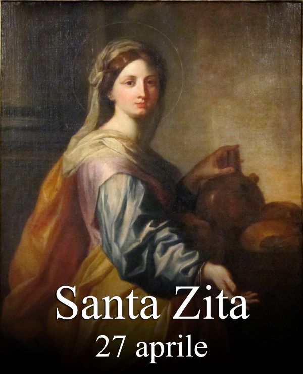 E’ un’umile domestica, figlia di poveri contadini di Monsagrati, un paese poco lontano da Lucca, dove nasce nel 1218. A soli dodici anni viene mandata a servizio presso la ricca famiglia dei Fatinelli a Lucca. Accetta con animo sereno la propria condizione sociale, consapevole che ogni servizio reso agli altri è meritevole agli occhi di Dio. La ricca famiglia ha in casa una numerosa servitù e sovente Zita supplisce col suo lavoro le manchevolezze dei compagni, che ricambiano i favori deridendola. Zita non mostra mai rancore per nessuno. Risparmia per dare ai poveri. Un giorno il padrone, vedendola uscire di casa con il grembiule rigonfio, la rincorre e le chiede : ‘Che hai lì dentro?’. Zita risponde: ‘Fiori e fronde’. Lascia il grembiule e ai suoi piedi cade una pioggia di fiori. Muore nella casa dei Fatinelli, nel 1272, dopo soli cinque giorni di malattia. Pio XII la proclama patrona delle domestiche, delle cuoche e delle guardarobiere.