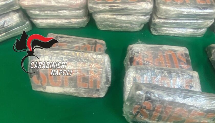 I carabinieri della sezione operativa e radiomobile di Castellammare di Stabia hanno sequestrato un 36 chili di cocaina purissima. Un carico di droga che al dettaglio avrebbe fruttato circa 5 milioni di euro. Gli uomini dell’arma hanno rinvenuto il carico lungo la stazione ferroviaria di Angri.  Un risultato frutto di controlli antidroga e del monitoraggio dell’area stabiese, spesso collegata nel traffico di stupefacenti ai comuni confinanti della provincia salernitana. La droga è stata sequestrata e le indagini proseguono a carico di ignoti. I carabinieri vogliono risalire al destinatario del carico.