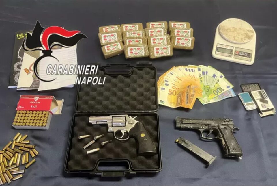 È successo a Torre del Greco dove in manette è finito un 37enne incensurato che ora deve rispondere di detenzione di droga a fini di spaccio, ricettazione e detenzione di armi clandestine. A scoprire tutto sono stati i carabinieri del locale nucleo operativo e radiomobile. Giunti in cantina durante la perquisizione hanno trovato 14 panetti di hashish per circa 1 chilo e 400 grammi di stupefacente. Con lo stupefacente è stata trovata anche una pistola calibro 9×21, una revolver Smithe & Wesson 357 Magnum e ben 96 proiettili. Entrambe le armi avevano matricola abrasa. Il 37enne è finito in carcere ed è ora in attesa di giudizio.