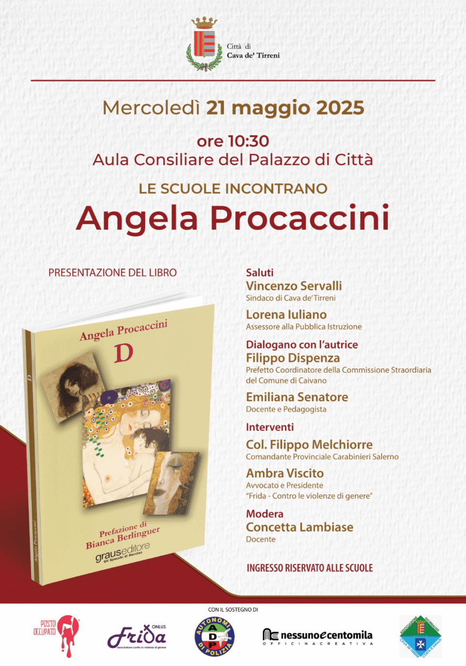 Le scuole di Cava de’ Tirreni incontrano Angela Procaccini il mercoledì alle ore 10.30 nell’Aula Consiliare di Palazzo di Città