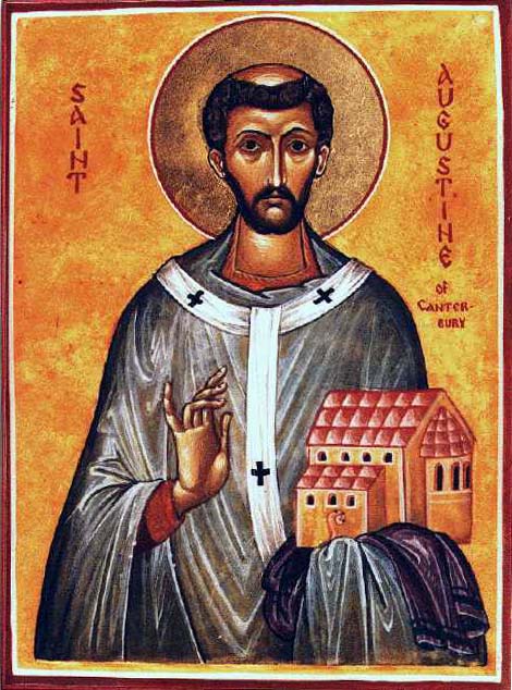 Non si hanno notizie certe sulla sua nascita, avvenuta in Italia nel VI secolo. Ordinato vescovo ad Arles, Agostino ha, da papa Gregorio Magno, l’incarico di rievangelizzare la Gran Bretagna, che con l’invasione dei Sassoni era ricaduta nell’idolatria. La sua missione è favorita dalla principessa cristiana Berta che esorta il marito Etelberto ad accogliere e proteggere i missionari. Il re incontra i missionari, li accompagna alla residenza prevista per loro e domanda il battesimo per se stesso. Sul suo esempio, migliaia di sudditi abbracciano la religione cristiana. Questo successo fa meritare ad Agostino il pallio e la nomina ad arcivescovo di Canterbury nel 601. Egli crea due nuove sedi vescovili, a Londra e a Rochester. Muore il 26 maggio del 604 ed è sepolto in Inghilterra.