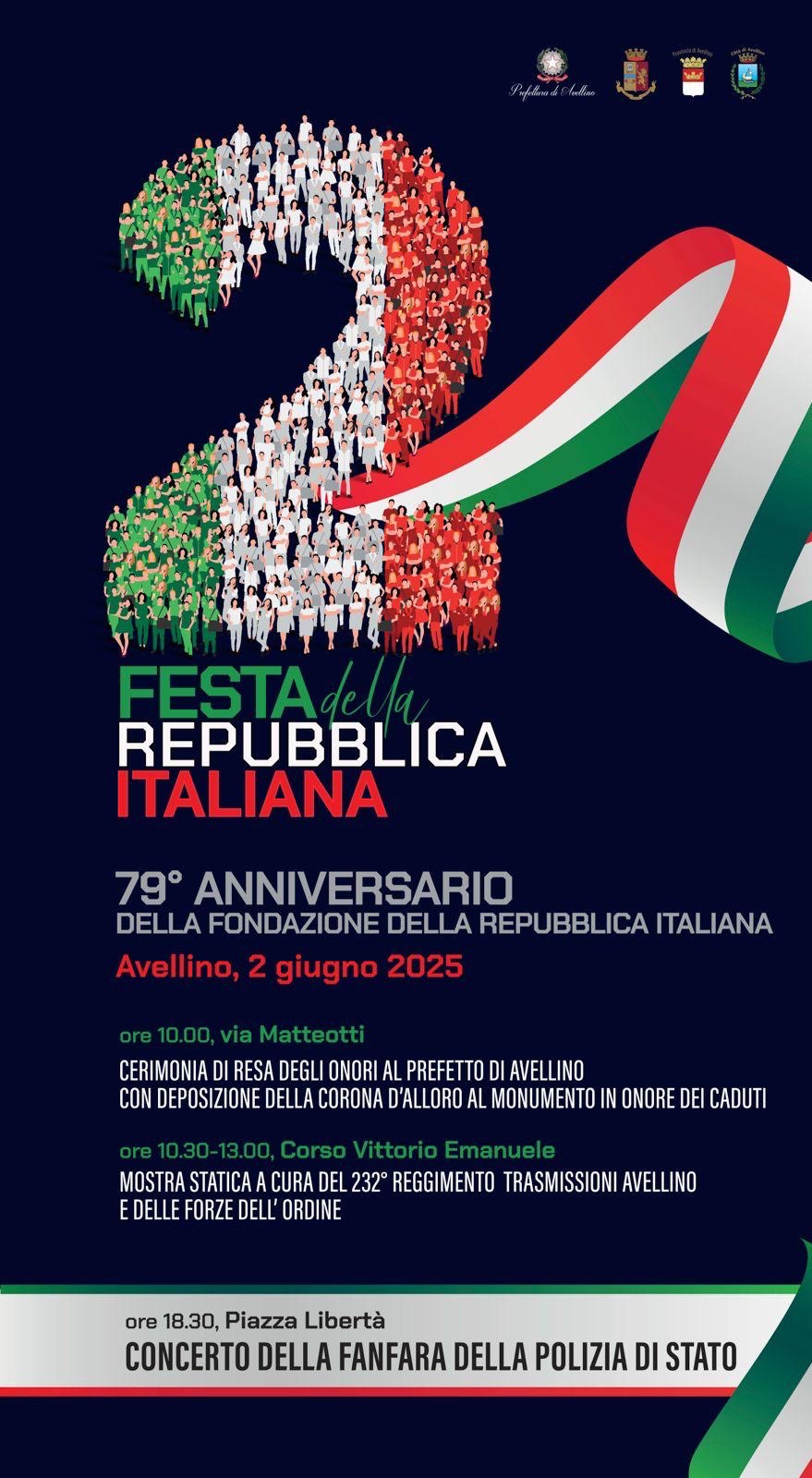 La Prefettura di Avellino celebra il 79° anniversario della Festa della Repubblica con una serie di iniziative in programma per l’intera giornata del 2 giugno.