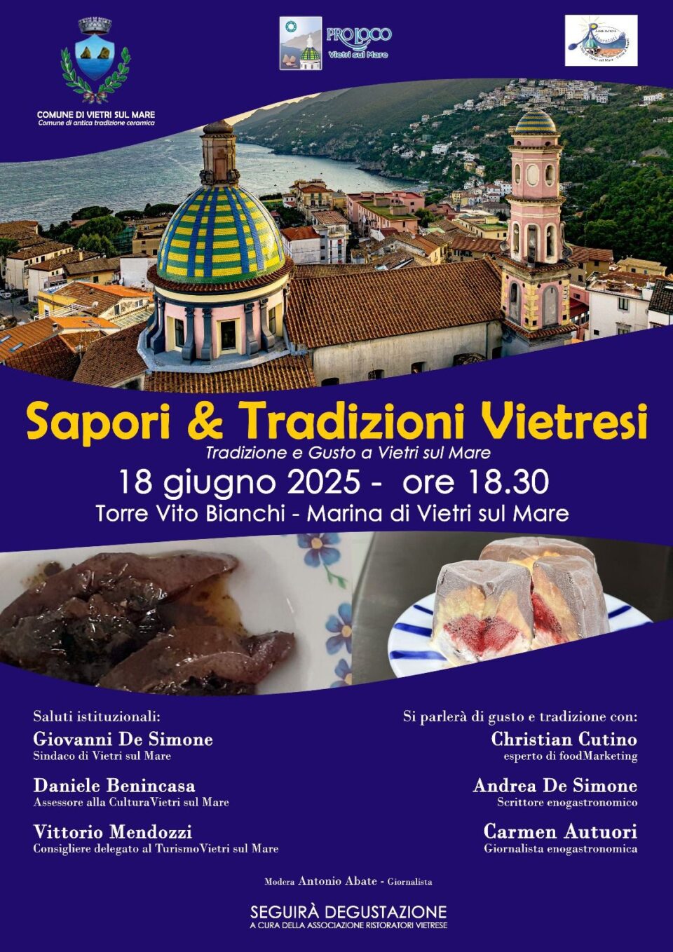 Un’occasione, quella di mercoledì 18 giugno 2025 presso la Torre Vito Bianchi alle ore 18:30, di approfondimento della conoscenza dei piatti tipici della tradizione vietrese, e perché no, anche di un goloso assaggio.