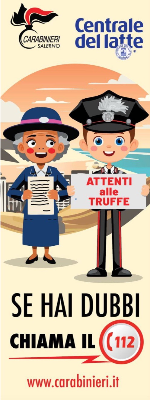 A tutela delle categorie sociali di persone fragili e vulnerabili, in particolar modo gli anziani, ha avuto inizio la campagna di sensibilizzazione sulle truffe, con alcuni utili consigli sulle confezioni di latte commercializzate dalla Centrale del Latte nella provincia di Salerno. Grazie all’accordo di collaborazione siglato lo scorso marzo tra il Col. Filippo Melchiorre, Comandante Provinciale dei Carabinieri di Salerno, e il dott. Diego De Martino, coordinatore Generale BU SUD della Centrale del Latte d’Italia S.p.A., da giugno 2025, su tutte le confezioni di latte commercializzate in provincia, sarà stampata l’immagine di un Carabiniere recante un cartello “Attenti alle truffe” e di un’anziana signora, accompagnata dalla raccomandazione “Se hai dubbi chiama il 112”. Grazie alla capillarità della distribuzione, la campagna punta a sensibilizzare un pubblico sempre più ampio, veicolando messaggi di prevenzione direttamente sulle confezioni di latte. I consumatori troveranno consigli semplici per evitare le truffe, fornendo utili indicazioni per tutelare se stessi e i propri cari. Ha preso così il via una campagna informativa e di sensibilizzazione che continuerà sino al prossimo luglio, e che consentirà di far arrivar ad una vasta utenza semplici indicazioni antitruffa. Questa iniziativa è l’ennesima in un più ampio progetto che il Comando Provinciale ha intrapreso da diverso tempo e che ha visto coinvolti molti altri enti, pubblici e privati dislocati sul territorio.