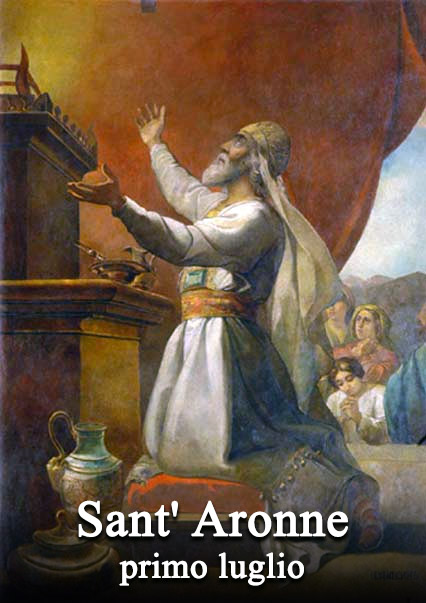 Fratello maggiore di Mosè, nato nel 172 a.C., Aronne è consacrato dallo stesso Mosè, primo sommo sacerdote insieme ai suoi figli. Muore a Cades, sul monte Hor, dopo essere stato spogliato da Mosè delle insegne sacerdotali, rivestendone il figlio Eleazaro. Il suo popolo lo pianse per trenta giorni giudicandolo grande e simile a Mosè. E’ collaboratore privilegiato di Mosè nel ricondurre il popolo ebraico nella Terra Promessa, dopo la liberazione dall’Egitto. Ad ottantatrè anni si presenta davanti al faraone, con il fratello, producendo i prodigi delle prime tre piaghe, come ci vengono descritte dalla Bibbia. Rimane a capo del popolo ebraico durante la permanenza di Mosè sul monte Sinai. In quel periodo ha la debolezza di farsi una immagine di Dio (un vitello d’oro secondo la terminologia semitica), per volontà del suo popolo. Viene però risparmiato dall’ira divina per intercessione di Mosè. Come Mosè, dubita della possibilità dell’intervento divino di far scaturire l’acqua dalla roccia e per tale ragione non metterà mai piede nella terra di Canaan. Nonostante sia fragile e peccatore, Aronne rappresenta un modello di collaborazione dell’uomo con Dio. (a. effe)