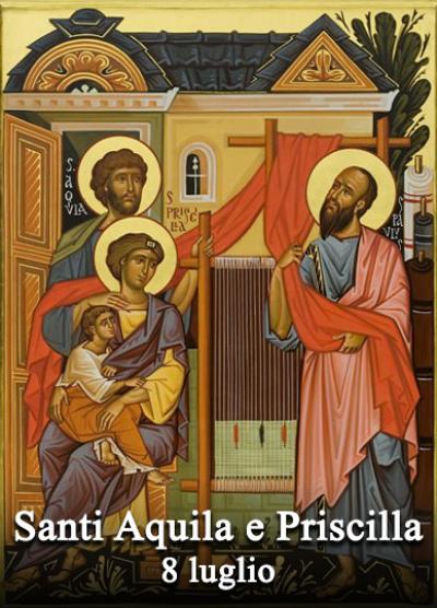 Si tratta di due sposi. Aquila era giudeo originario del Ponto trapiantato a Roma, mentre Prisca, detta anche Priscilla, era romana. I due si convertirono al cristianesimo. Divennero collaboratori di San Paolo Apostolo e lo aiutarano a diffondere il Vangelo.