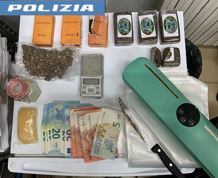 Il personale della Squadra Mobile della Questura di Salerno nei giorni scorsi ha proceduto all’arresto di N.F., per il reato di detenzione ai fini di spaccio di sostanza stupefacente, in quanto, lo stesso, secondo la ricostruzione operata dalla polizia giudiziaria sarebbe stato individuato in possesso, a seguito di perquisizione, di circa 5 grammi di cocaina, vari panetti di hashish per un peso complessivo di circa grammi 680, circa 60 grammi di marijuana, una confezione di estratto di cannabis noto come “crumble” del peso di circa 50 grammi oltre a materiale per la pesatura ed il confezionamento nonché la somma euro 195 in denaro contante, suddivisa in banconote di piccolo taglio, ritenuta provento dell’attività di spaccio.