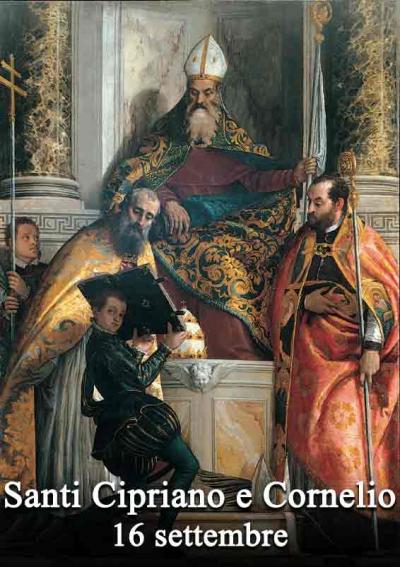 Cornelio diviene Papa nel marzo del 251 e si impegna tenacemente per sanare la controversia sul trattamento da riservare ai ‘lapsi’, coloro che durante la persecuzione, per garantirsi la salvezza, avevano compiuto atti di abiura. Quando l’offensiva anticristiana riprende vigore con l’imperatore Treboniano Gallo, papa Cornelio viene arrestato e inviato in esilio a Civitavecchia, dove muore dopo breve tempo. Quanto sappiamo su Cipriano, vescovo di Cartagine e martire nel 258, ci viene principalmente dai suoi stessi scritti: i suoi trattati e il suo epistolario. Nasce agli inizi del III secolo, nel Nord Africa, probabilmente a Cartagine. Acquisisce una grande abilità nella pratica della parola parlata e scritta e inizia una promettente carriera come insegnante di retorica. Carriera che viene interrotta dalla sua conversione al cristianesimo, avvenuta intorno al 246. Viene ordinato sacerdote e nel 249 diviene vescovo di Cartagine. Nel 258 viene processato e condannato alla decapitazione. Se un martirio cruento non trova attestazione nelle fonti antiche, la qualità di martire è però ripetutamente attribuibile a Cornelio da Cipriano, e figura come aggiunta nell’iscrizione latina con il nome e il titolo episcopale rinvenuta nel cimitero di Callisto, dove il corpo viene traslato da Civitavecchia forse alla fine del III secolo.
