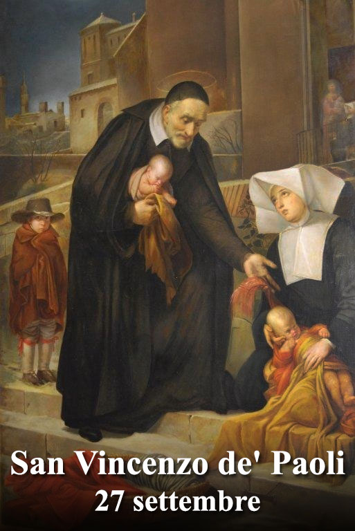 Nasce a Pouy, nelle Lande francesi, il 24 aprile del 1581, terzo di sei figli. Vive nell’ambiente rurale e fa il pastore fino a quando viene orientato allo stato ecclesiastico. Diviene sacerdote e, toccato da alcune forti esperienze quali l’abbandono spirituale dei poveri e l’estrema indigenza di alcune famiglie, nel 1625 fonda la Congregazione della Missione e nel 1633 le Figlie della Carità. Si sente interpellato a rispondere alle ‘due grandi povertà’: quella spirituale e quella materiale. Conosce anche S. Francesco di Sales e Giovanna Francesca de Chantal, che gli affidano la direzione dei monasteri della Visitazione di Parigi. Comincia poi l’epoca delle grandi fondazioni. Vincenzo ottiene di potersi dedicare alle missioni popolari e ad altre iniziative, come l’assistenza ai condannati alle galere. Trova in S. Luisa de Marillac una collaboratrice intelligente e preparata per interpretare gli orientamenti della sua intuizione delle Figlie della Carità. Queste lavorano negli ospedali e accolgono gli orfani. Molte sono le difficoltà che Vincenzo deve superare, ma presto diviene una figura conosciuta, stimata e ricercata. Muore a Parigi il 27 settembre 1660.