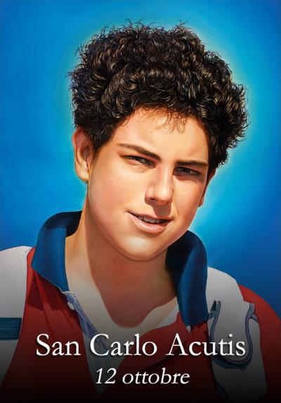 Carlo Acutis nacque a Londra il 3 maggio 1991 da Andrea Acutis e Antonia Salzano, milanesi provvisoriamente in città per lavoro. Carlo fin da piccolo manifesta un’indole particolarmente devota tanto che tornati in Italia a soli 7 anni chiese di poter ricevere la Prima Comunione. Richiesta insolita ma che venne accolta dopo averla sottoposta a Monsignor Pasquale Macchi il quale diede il suo benestare dopo aver interrogato il ragazzo, ritenendolo idoneo. Carlo ricevette così l’Eucaristia il 16 giugno 1998, giovanissimo, e restò un punto fermo nella sua breve vita assieme alla messa quotidiana alla quale assisteva. Carlo era anche bravo in informatica tantochè è stato proclamato patrono del web. Dopo aver assistito ad un incontro di presentazione del Piccolo Catechismo eucaristico decise di dare vita ad una mostra sui miracoli eucaristici, per testimoniare la vera presenza di Gesù nell’ostia. Dopo tre anni di ricerche in giro per l’Europa con in genitori la mostra era pronta e talmente ben fatta da essere richiesta dalle diocesi di tutto il mondo. Il sogno di Carlo era di farsi sacerdote, ma purtroppo all’età di 15 anni fu stroncato da una leucemia fulminante, e dopo aver dedicato la sua vita “al suo amico Gesù” torna alla casa del Padre il 12 ottobre 2006. Fu sepolto ad Assisi su sua richiesta, per il grande amore che nutriva per San Francesco e successivamente dal cimitero viene traslato nel Santuario della Spogliazione: attraverso una speciale procedura di imbalsamazione viene esposto alla visita dei pellegrini. Dichiarato venerabile nel 2008 è stato beatificato il 10 ottobre 2020 dopo averne accertato almeno un miracolo, ovvero la guarigione di un ragazzo brasiliano avvenuta dopo averne toccato le reliquie. Il 7 settembre 2025 Papa Leone XIV l’ha elevato agli onori degli altari.