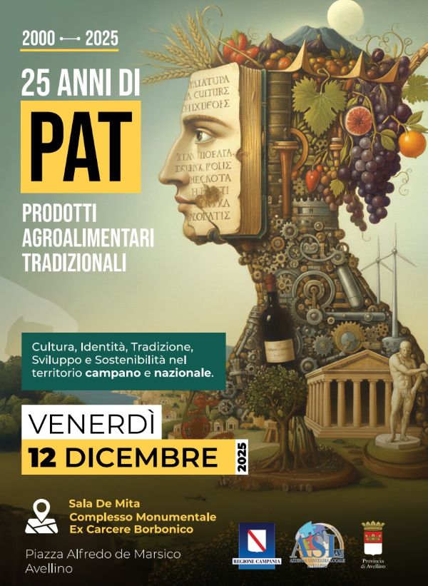 Patrimonio di storia, cultura e identità locali, i Prodotti Agroalimentari Tradizionali compiono 25 anni. Presso il Complesso monumentale ex Carcere borbonico di Avellino domani, dalle ore 9:00, si terrà l’evento promosso dal Dipartimento di Prevenzione dell’Asl, sede del CRIPAT, per celebrare un quarto di secolo e fare il punto sul processo di valorizzazione dei PAT a livello regionale e nazionale, alla presenza di tecnici, esperti e rappresentanti del Ministero dell’Agricoltura, della sovranità alimentare e delle foreste, delle Regioni Campania e Veneto, dell’Arsial Lazio e dell’ICQRF di Campania e Molise.