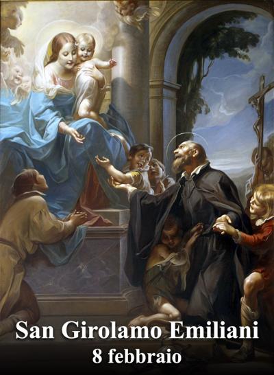 Nasce a Venezia nel 1486. Come è consuetudine fra i patrizi della Serenissima, intraprende la carriera militare. Le frequenti guerre tra i piccoli Stati della Penisola offrono un’occupazione sicura. Venezia deve vedersela in quel periodo con una intera coalizione di eserciti della Lega di Cambrai. Nello scontro di Castelnuovo, Girolamo viene fatto prigioniero per un mese. Da allora la sua vita cambia rotta: depone la spada e si dedica a sanare le ferite, fisiche e morali, che le guerre infliggono ai più deboli, ai bambini specialmente. Vende tutto ciò che ha e va in giro per le città della Repubblica dove infierisce il morbo della peste. Nel 1518 è ordinato sacerdote e si dedica completamente al servizio dei poveri e degli ammalati. Fonda la Società dei Padri Somaschi, una benefica istituzione di scuole gratuite, aperte a tutti. Muore di peste l’8 febbraio 1537.